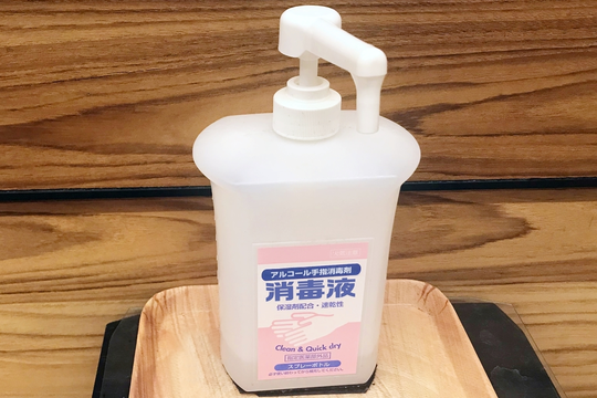 玄関、待合室への消毒液の設置