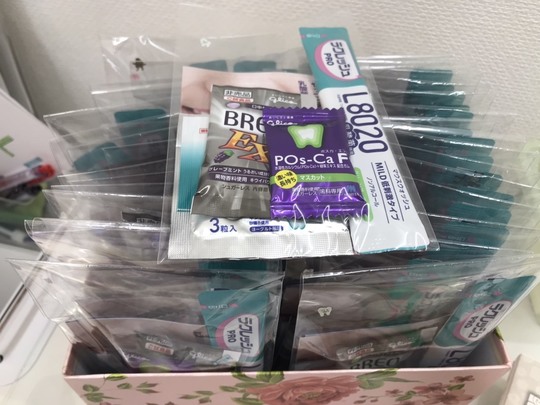 そんな時、歯医者のお菓子はキシリトール100%なので、虫歯の原因になることもなく健康面でもオススメです。またガムには噛むことで脳をリフレッシュさせる効果もありますのでぜひお試しください!