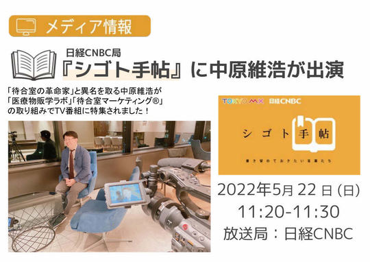 番組内では、中原が手掛ける「医療物販学ラボ」「待合室マーケティング®」などの取り組みについて特集されることになりました。
