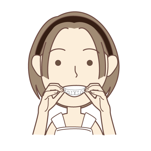 患者さんの歯型にあった専用のマウスピースを作り、その中に薬剤を入れご自身で歯に装着してホワイトニングをしていただきます。安全のため弱めで歯に優しい薬剤を使用しているため白くなるまでに時間はかかりますが、透明感のある仕上がりでホワイトニングの効果も長続きします。ご自宅で2週間程度おこなっていただきます。
